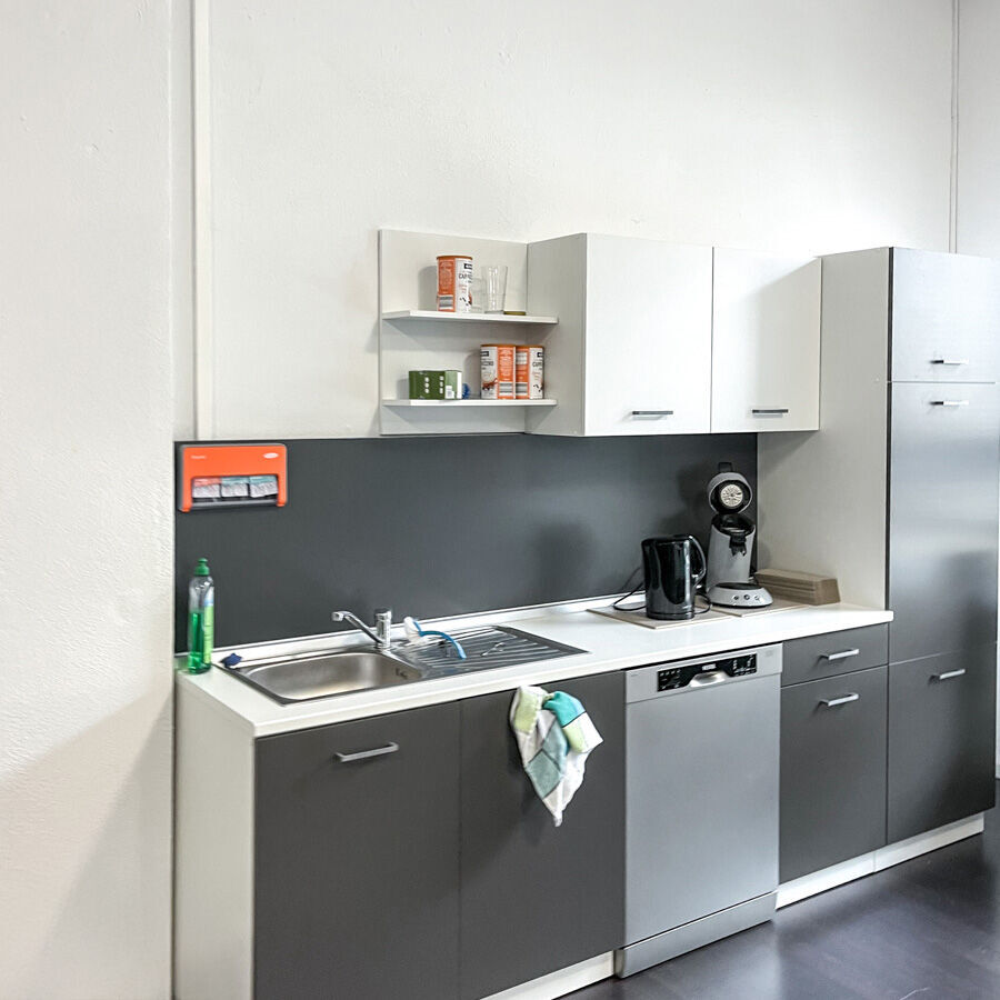 Ihr Unterricht findet von 8 bis 16:15 Uhr im ersten Stock statt. Die Räume wurden im Sommer 2018 komplett umgebaut und vollsaniert. Ein offener Eingangs- und Küchenbereich mit kleinen Sitzecken und einer Esszimmergarnitur lädt zum Verweilen ein. Die Räume sind lichtdurchflutet und mit schalldichten Milchglaswänden abgetrennt, sodass Sie eine angenehme Lernatmosphäre vorfinden. Als weitere Lichtquellen dienen die großen und zahlreichen Fensterfronten. Die gesamte Etage ist mit modernen Tageslichtleuchten ausgestattet.