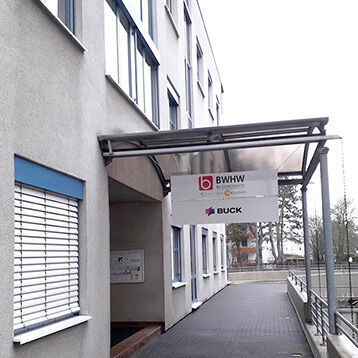 Der Bürokomplex besteht aus zwei Trakten mit eigenen Eingängen. Neben dem BWHW sind hier auch andere Firmen und Kanzleien vertreten. Modern, hell, freundlich und geräumig präsentieren sich die Schulungsräume, die sich im rechten Trakt im 3. OG und im linken Trakt im 2. OG befinden. Bei Bedarf bringt Sie ein Fahrstuhl nach oben.